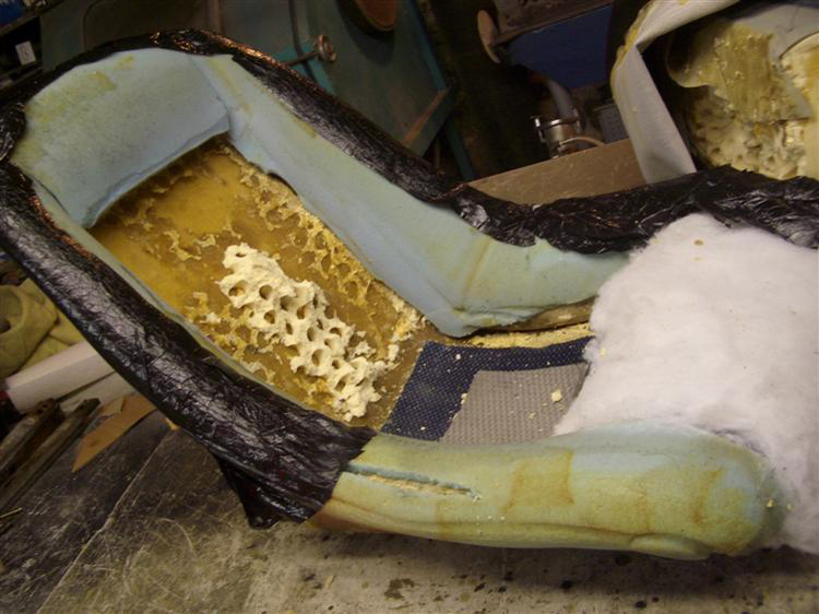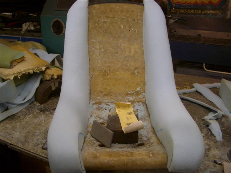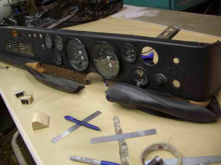 1971 De Tomaso Mangusta 8MA1294 in its racing days.1971 De Tomaso Mangusta 8MA1294 in its racing days.1971 De Tomaso Mangusta 8MA1294 in its racing days.The car had already been retrimmed once, many years ago.The ignition switch only has two positions - on or off, with no sprung starter position. The button next to it cranks the engine. I think this might be original to right hand drive cars, but I'm not sure. I would like to hear opinions from other RHD car owners.Dash top. Notice the 'safety' rubber strip sitting on top of the spot welded lip, not over it. Always wear your seat belt!In order that I could maintain a consistent thickness for my 'French seam', I made the corners of the dash top thicker by adding extra metal.Finished. The ends are now the same thickness as the rest of the dash top. I chose to replace the rubber with pine because I would not be able to glue my French seam to the rubber and maintain consistency.Filled, sanded, etch-primed.These corners are very difficult to sew because it's such a tight bend.The lower part of the dash was originally a rounded piece of foam. I remade it in pine and then changed the shape where it wraps around the sides. It now goes straight down for 30mm before it starts to curve underneath.I didn't like the way the leather stopped and started either side of the steering column, so I welded in an extra piece of steel to carry the leather over the column to the other side.I also had to modify the bit above it.I am very pleased with the results on this part.I did the opposite to De Tomaso - I put the Alcantara in the centre of the dash and the leather on top (like my Pantera). Taz may not be able to see anything out of the windscreen due to reflections, but it looks great!I added material to the edges of the glove box lid to make the gap smaller.I made the polished bezels for the ignition switch and starter button on my lathe. This is very easy to do and makes a huge difference to the finished dash. Every man should own a lathe.I used black Alcantara inside the glove box lid. The chrome had rubbed off the dash vents after 40 years of use, so I had them metallised. It's very much like chrome but more suitable for plastic. This alone cost £80!Me. Inspecting the quality from the inside…The original Mangusta arm rest which was carved from wood. I had to make repairs because they were split in several places.I cut new door cards out of hardboard and then added extra panel clips at the sides. This was because I did not want to have the screws going though the leather like they did on the original car, as they look tacky.Extra metal added to the end of door cap to make the fit right.Door card trim.Finished door card.The centre console had large chunks missing.I repaired this crack with sheet metal and countersunk aircraft rivets.I decided to extend the skirt so that it would sit down over the ribs on the floor. This makes it easier to create perfect carpets.The bulkhead panels were missing - I think they were originally made from hardboard. I decided to remake them in steel as it meant I could weld threaded studs on to hold the assembly together properly.On the original bulkhead, these gull wing release handles just looked unfinished sitting there on top of the panel. To get around this, I created a special compartment for the handle to sit in.I also used Alcantara on the bulkhead panels and head lining. The quilted effect was often used on Bizzarrini and Iso cars of the period.The kick panels were missing, so I fabricated these as replacements.I thought I was a good trimmer until I met the Mangusta seat. This must be the most difficult design ever made because the cover is all in one piece and fitted inside out. By comparison, Pantera seats are a piece of cake!The original foam in the Mangusta seats was moulded on a machine with air pockets. This had turned to a bread-like dust after 40 years.The De Tomaso factory made a mistake when they trimmed the 'Goose seats in not putting an edging trim along the sharp edge of the fibreglass base. The stresses imposed by people getting in and out of the car soon results in it cutting through the foam. Once that happens, the seat cover loses its tension, which looks awful. I have therefore added extra internal padding to prevent this happening.The moulded foam for the 'Goose seats is not available. I had to cut it from solid blocks with an electric carving knife and sand it to shape with various sanders. It took ages…I fabricated this metal-cutting bandsaw a few years ago and have used it every day since. With its 36-inch throat it also cuts foam!Seat cover pleats - sewn not glued.Steel rods sewn into lining as per the original. I use cable ties rather than the original string, however.Finished seats. I was careful not to use too much foam because I didn't want them to look too bulky.Seat runners - these needed work.After fixing the various bits, I had them zinc plated and then made bespoke aluminium knobs on the lathe.Alcantara head lining.Leather glued onto the inner roof frames.The storage tray and binnacle for the radio were missing. I therefore had to come up with my own design which I fabricated from 20-gauge steel.I bought a stainless Mangusta badge from Larry Stock at PPC. These are cut with a water jet.After one hour with the Dremel and metal polish I softened all the edges and it came up like chrome.I repositioned the shifter housing because it was not square with the console. I had to weld in new metal then drill and tap it. The correct position was half way over the original holes… Dammit!The shifter surround was also missing, so I made a replacement from steel.I changed the shape of this part to make the chrome H gate more visible from the side when looking into the car from outside.This is all that remained of the ash tray. The chrome bezel had clearly been lost at some stage and someone had tried to make a replacement from bits of plastic picture frame!I could have had the original sliding 